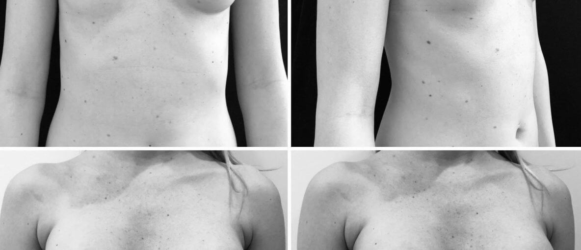 Hálás feladat az alapból csinos, szabályos kebleket gyönyörűvé varázsolni. A képen látható fiatal hölgynek szép, formás, de pici cicijei voltak, amely kislányos alkatot kölcsönzött neki. Az ő esetében egy közepes méretű, 300 köbcentis, magas profilú szilikon implantátumot választottunk, amelyet izom alá (dual plane technikával) helyeztünk be. Láthatjuk, hogy az eredmény tökéletes lett, az egész testkompozíció megváltozott, szupernőies idomai lettek a hölgynek 🙂