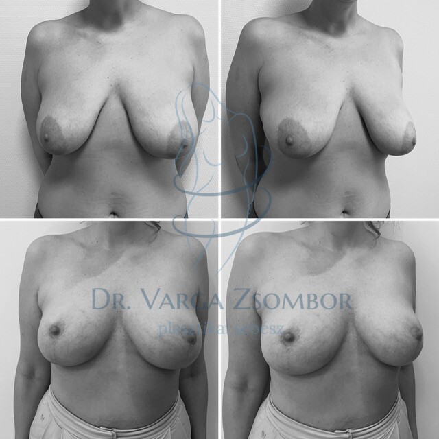 31 éves Páciensünk mellfelvarrás előtte-utána képei. A mellbimbókat 5 centivel hoztuk feljebb a beavatkozás során, a bimbóudvar átmérőjét pedig 85 miliméterről 35-re csökkentettük. A mirigyállomány térfogata nem változott, csak formásabban helyezkedik el a mellkason 😊