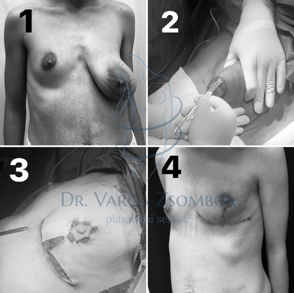 A beavatkozást megelőző előzetes kivizsgálások megtörténtek, a rosszindulatúság gyanúját szerencsésen sikerült kizárni. A mellaszimmetria műtét tervének felállításakor az elváltozás teljes eltávolítását, majd ezt követően a maradék mirigyállománynak az ellenoldalihoz hasonló megformálását, a bimbóudvar megfelelő helyzetbe állítását tűztük ki célul.
