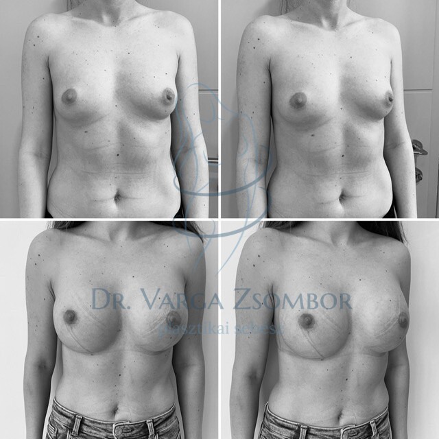 31 éves páciensünk kapott kerek, középmagas, 325 köbcentis Mentor implantátumokat. A hölgy 169cm, 54kg, mellkas körfogat 73cm.
