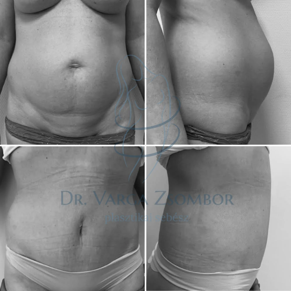 44 éves 3 gyermekes édesanya midi hasplasztika műtétje során 3 ujjnyi (azaz kb 6 centi széles) szétnyílt hasizmot varrtuk végig, a fennálló köldöksérvet is megoldottuk (háló beültetése nem volt szükséges). A még szebb eredmény érdekében 800ml zsírt is leszívtunk.