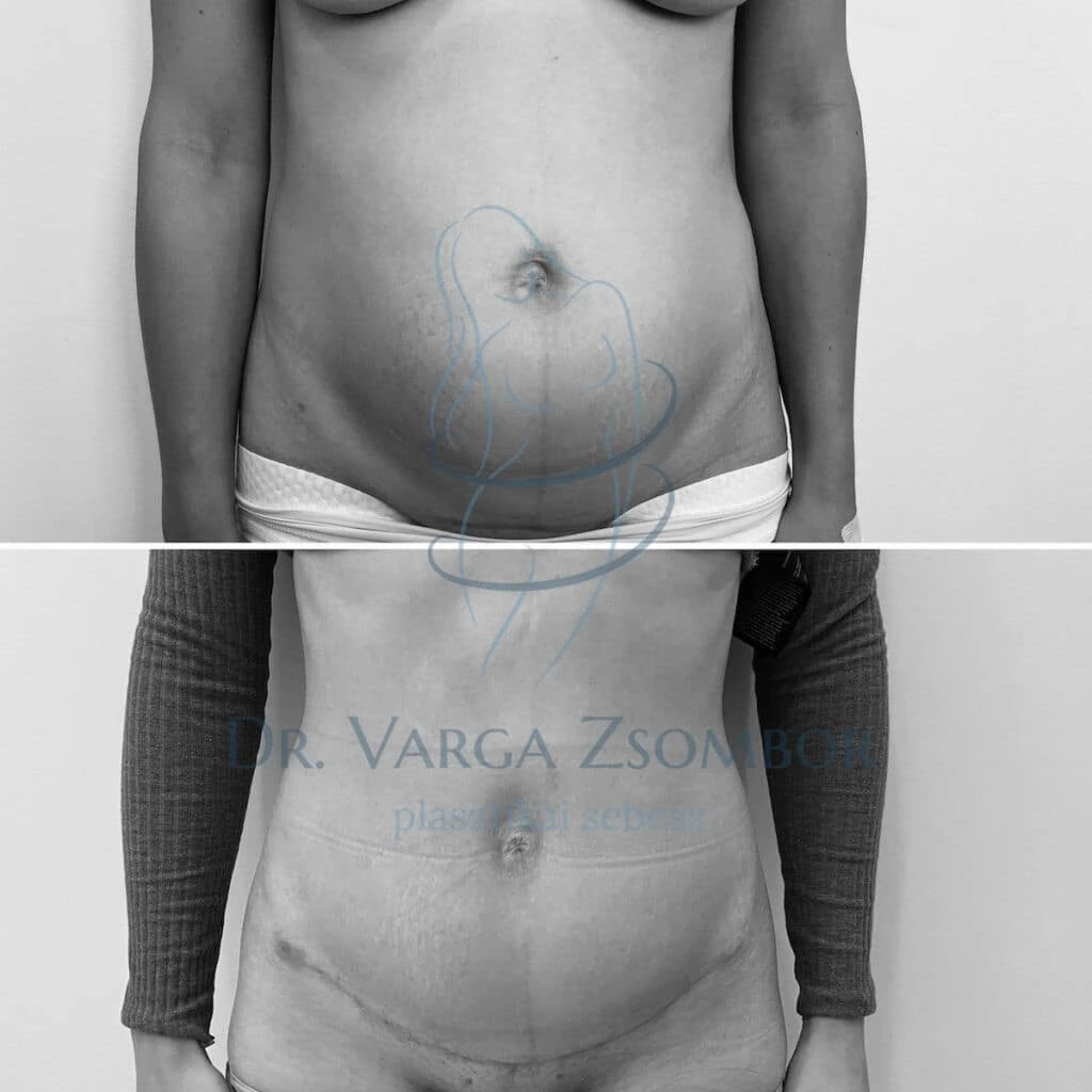 Kétgyermekes édesanya “utána” fotója 3 hónappal a műtétet követően. A beavatkozás során a panaszokat okozó lágyéksérvet is elláttuk, illetve a császármetszés hegét is eltávolítottuk. Már nagyon várja a Mommy makeover következő lépését, a mellplasztikát.