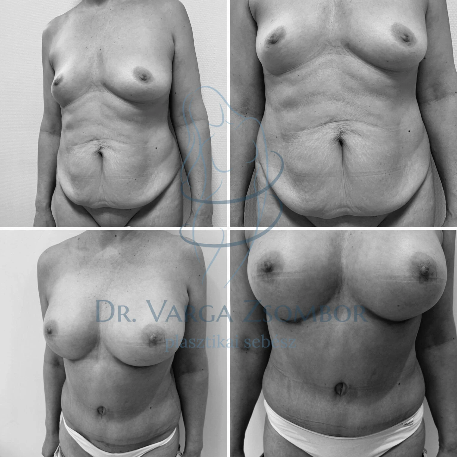 A hasi részen császármetszés hegét és szétnyílt hasizmot oldottunk meg. Hogy a maximumot kihozzunk a műtétből, zsírleszívással is megtoldottuk a tennivalók sorát.