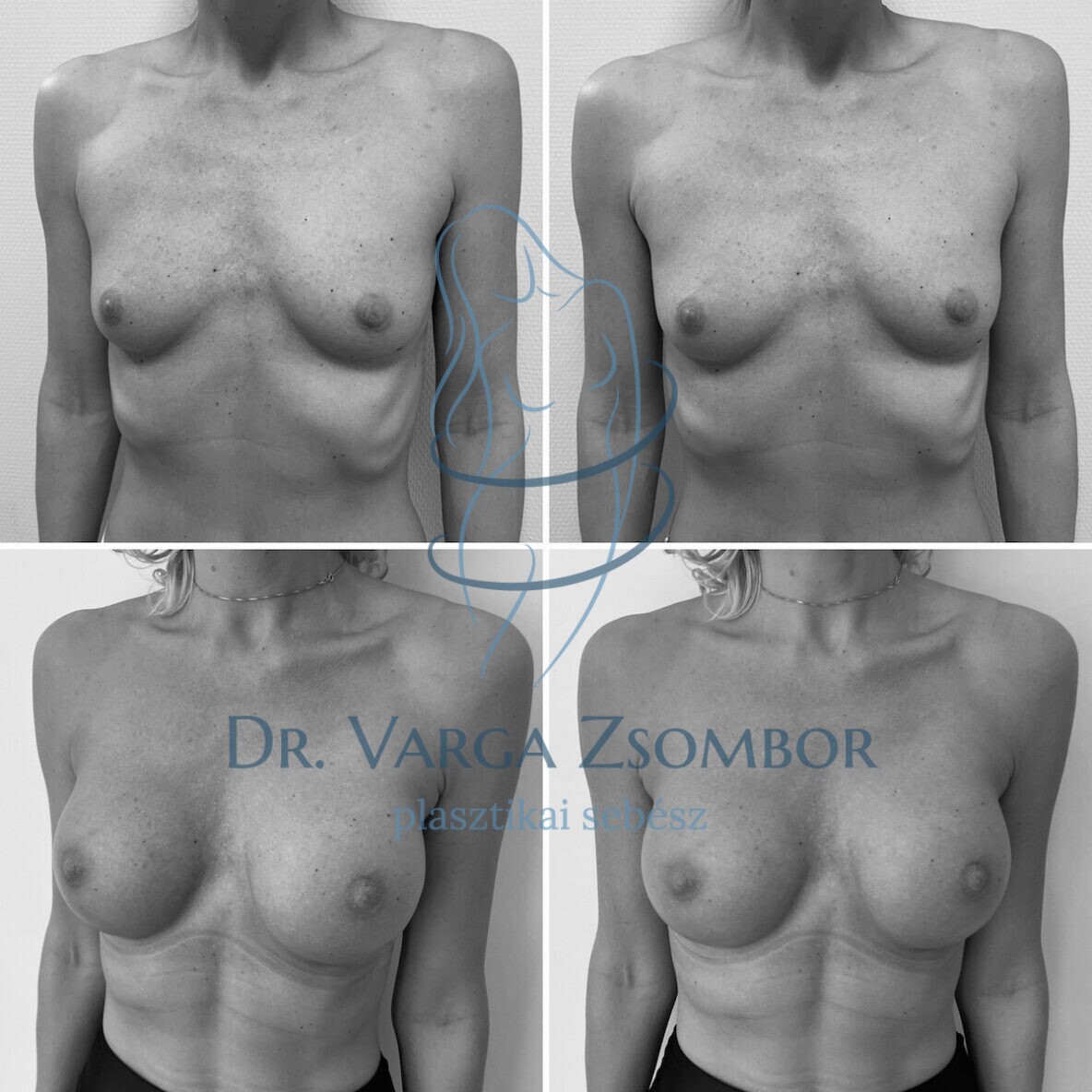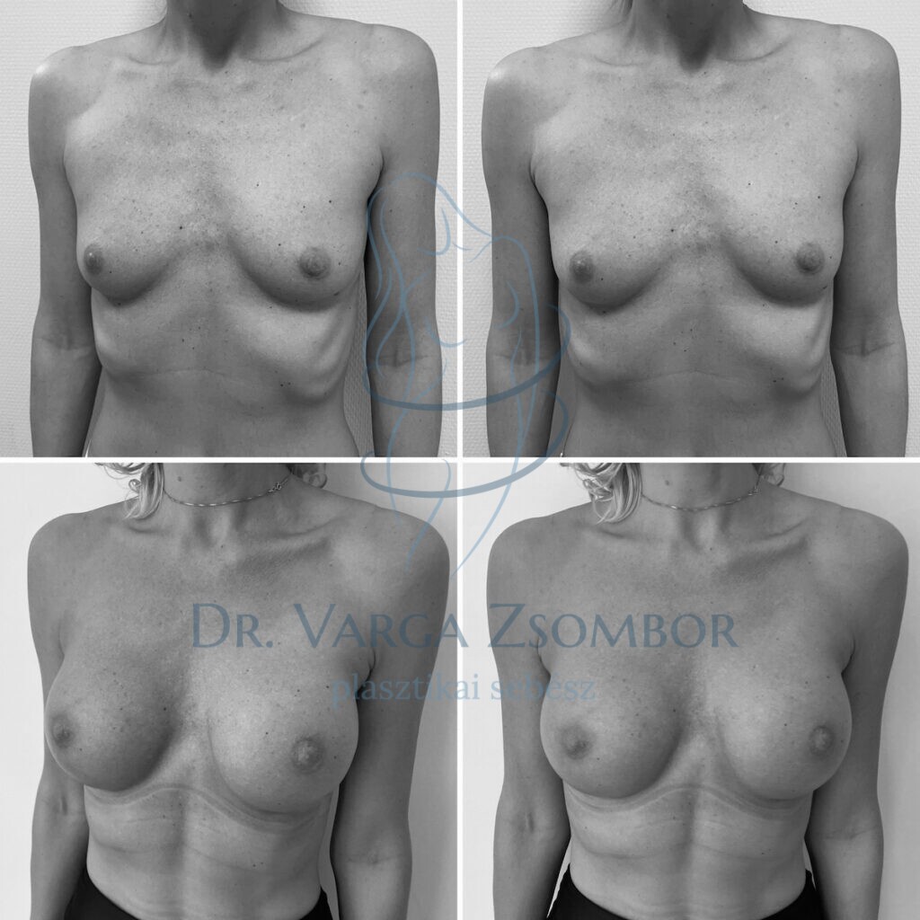 Testarányos mellnagyobbító műtét 41 éves csinos, sportos hölgy testarányos mellnagyobbító műtétjéhez 275 köbcentis középmagas implantátumokat hívtuk segítségül. (165cm, 51 kg, 74cm mellkas körfogat)
